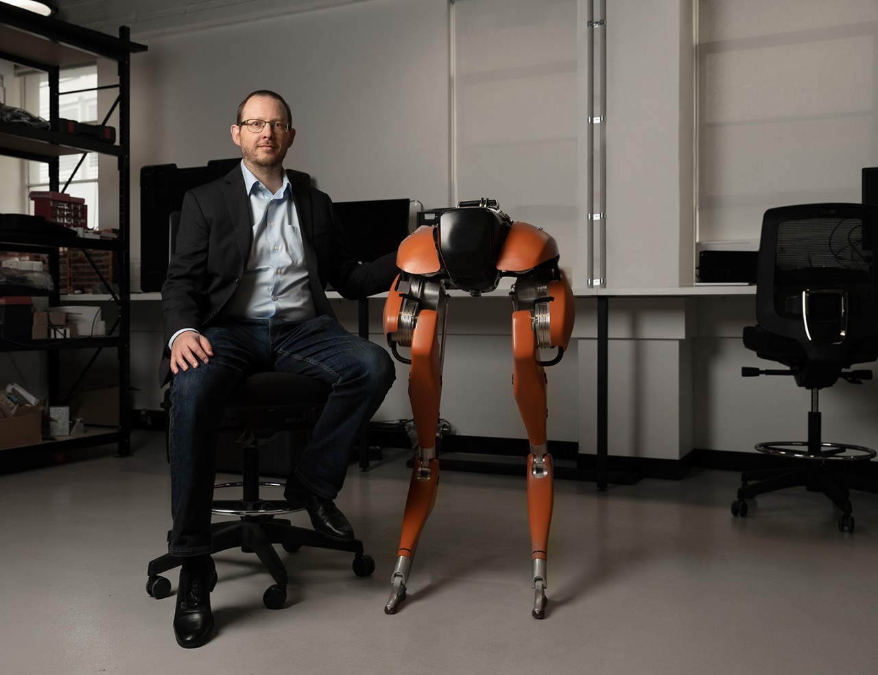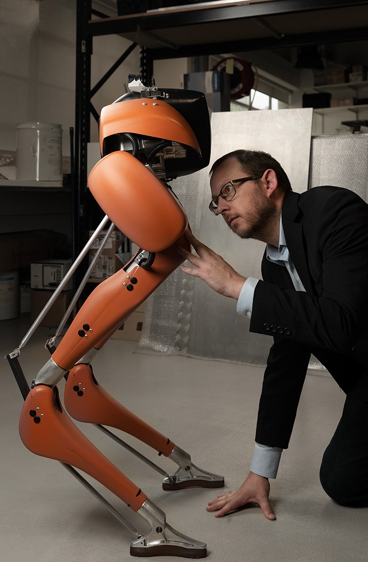 Professor Ian Manchester and the Agility Robotics Cassie robot.