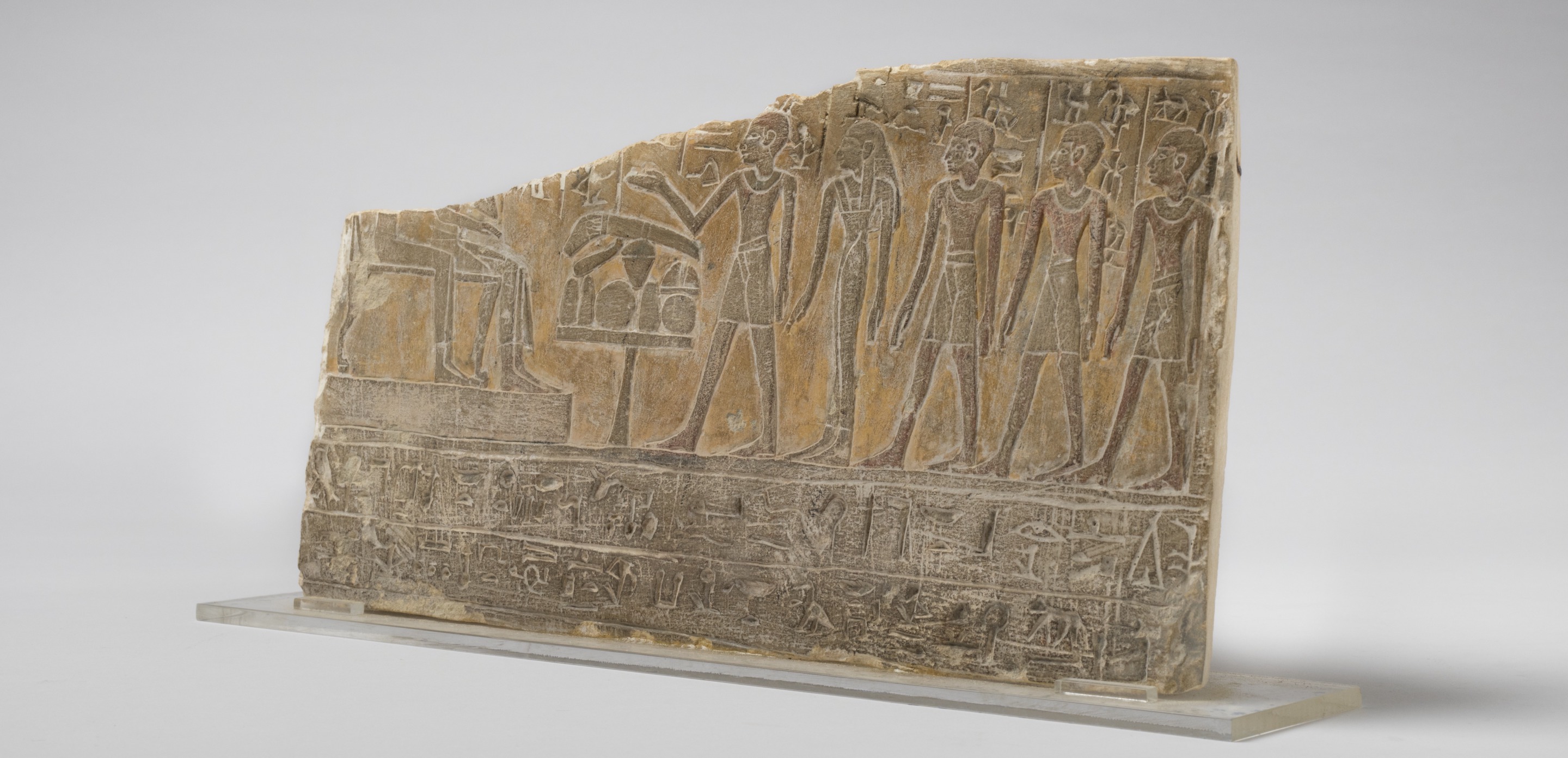 Header image: Lower fragment of a former round-topped limestone funerary stele, 18th Dynasty (1479–1390 BC), Thebes, Upper Egypt, Nicholson Collection, NMR.7