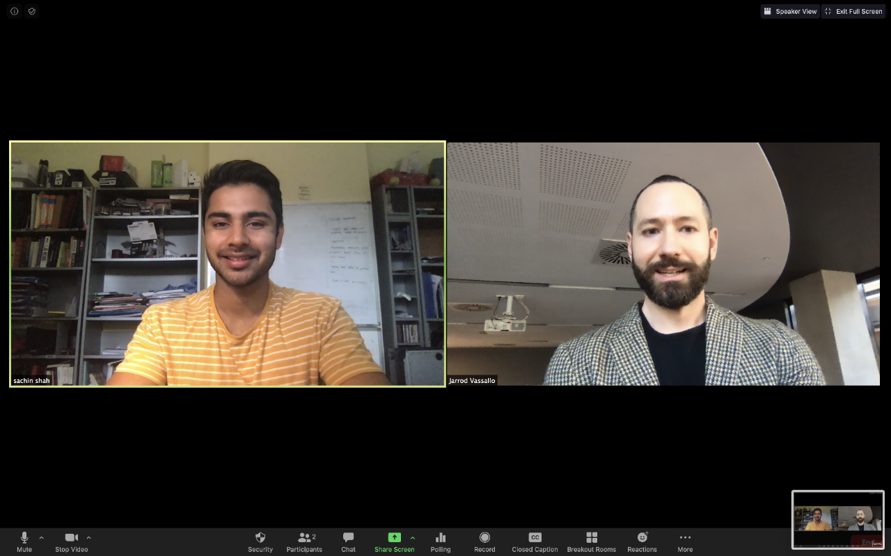 Sachin Shah and Dr Jarrod Vassallo on Zoom (May 2020).