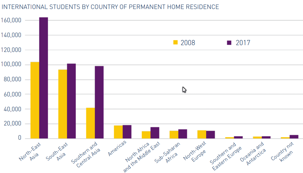 Enrolments at some of our largest universities also have an unacceptable skew towards single countries – either China or India. Some universities, particularly Group of Eight institutions, have fallen into the habit of setting international fees according to what China – the world’s largest student market – will bear. This has eroded competitiveness in more cost-sensitive countries like those in South East Asia and Latin America.