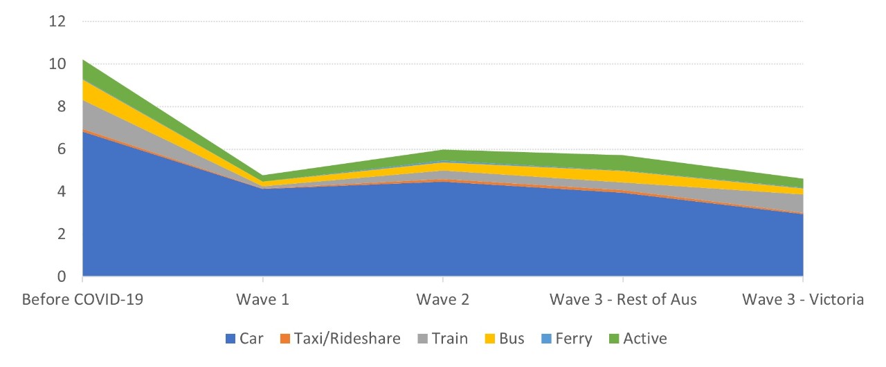 The researchers collected the data in three waves, the first being immediately after National Cabinet’s decision to shut international borders almost one year ago. The number of commuting trips plummeted by more than half in the first wave.