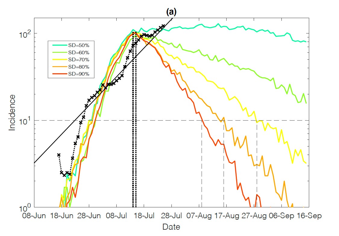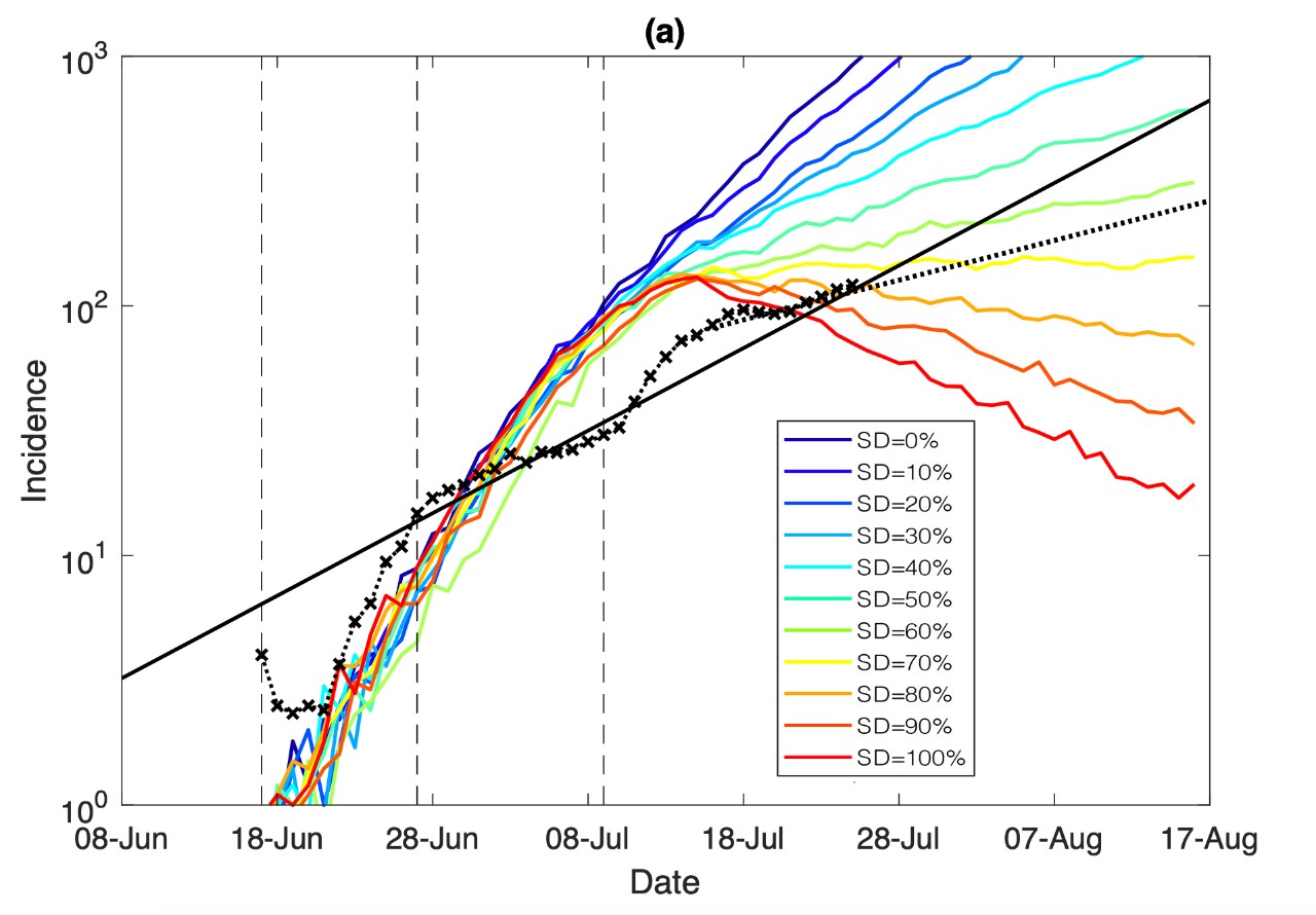 The modelling analysed the period between 16-25 July 2021, finding that although the actual incidence growth has reduced from 10 to 3.7 percent, social distancing currently sits at around 60 percent, which is still too low to control the outbreak of Delta.
