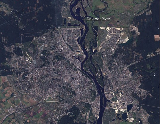 Ukraine's capital, Kyiv as captured by a NASA satellite in 2006.