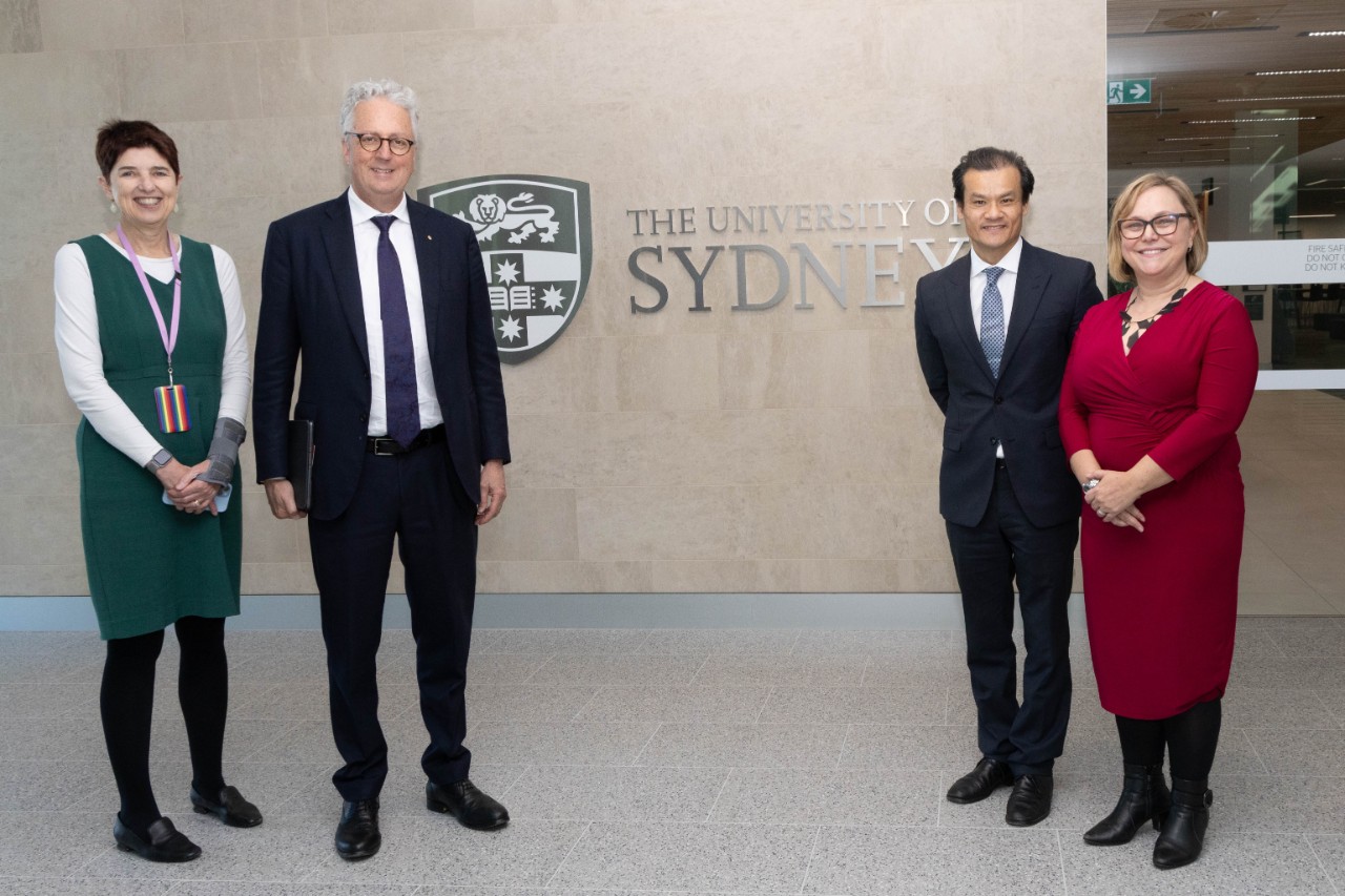 (L-R) Executive Dean and Pro Vice-Chancellor Medicine and Health, Professor Robyn Ward, Vice-Chancellor and President Mark Scott, Minister Anoulack Chanthivong and Kirsten Andrews at the Minister's tour of the facility.