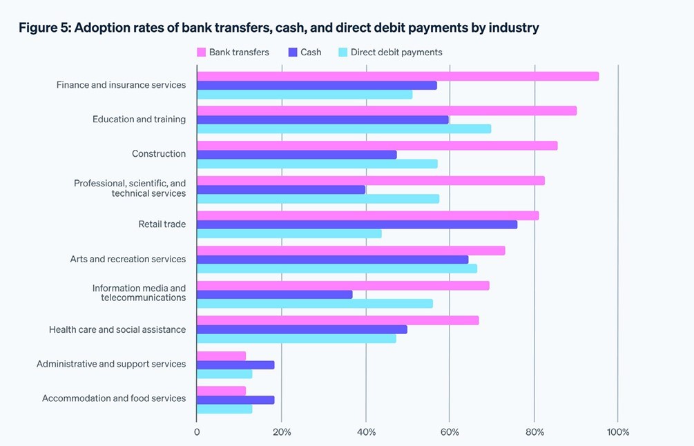 Digital payment adoption varies widely across industries for Australian businesses.