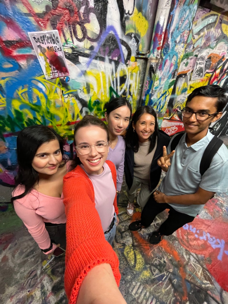 Cameryn with friends in the graffiti tunnel on our Camperdown Campus.